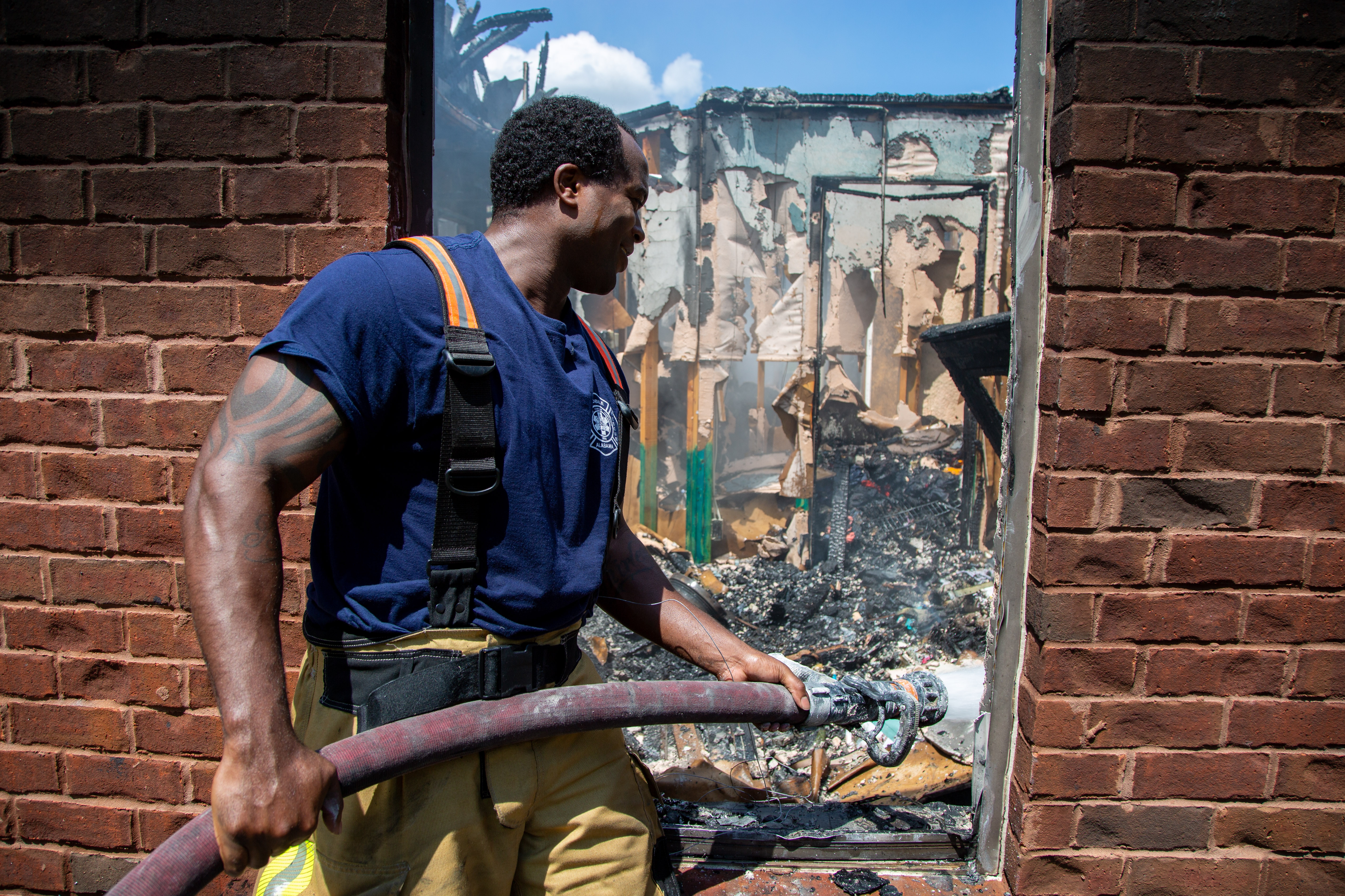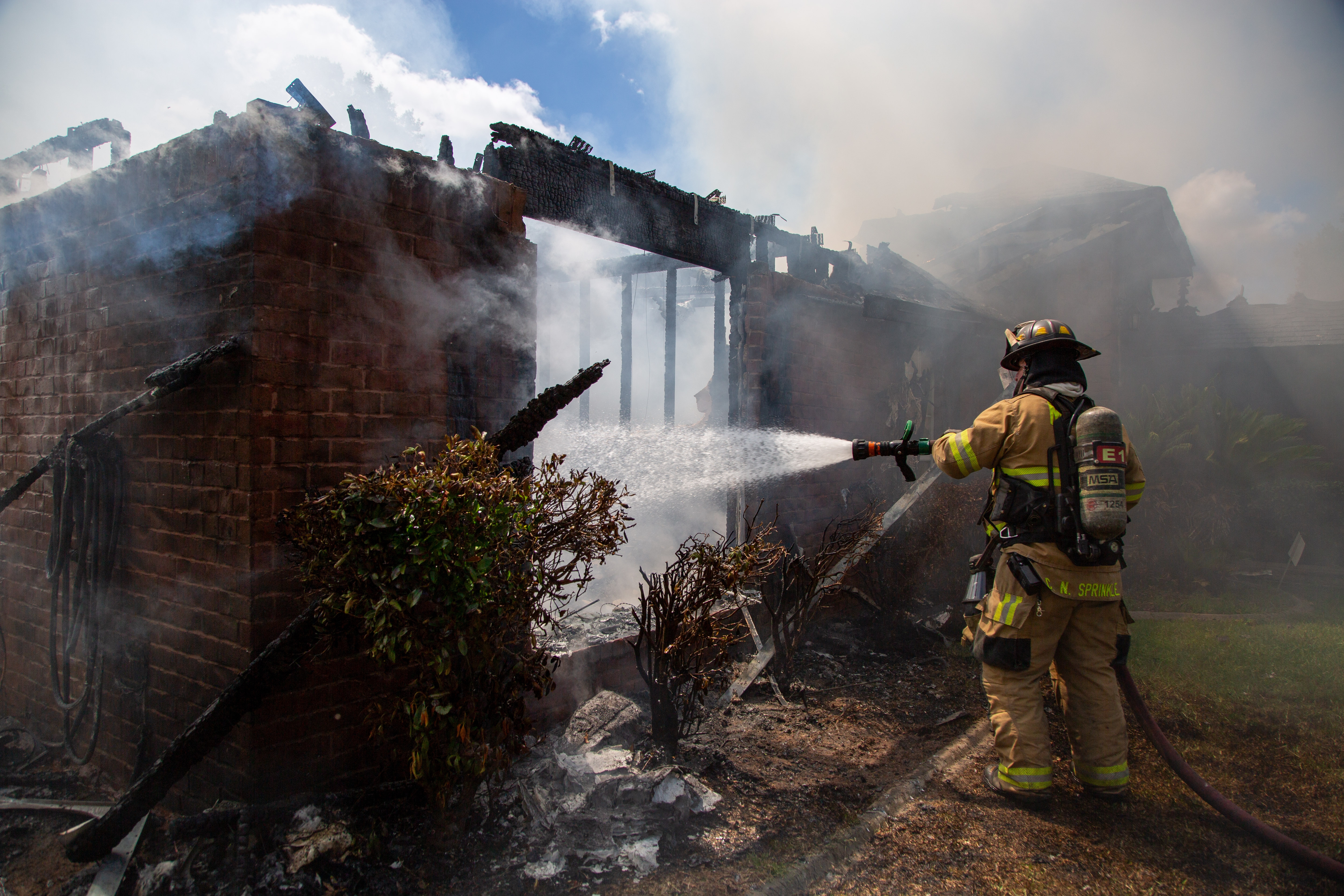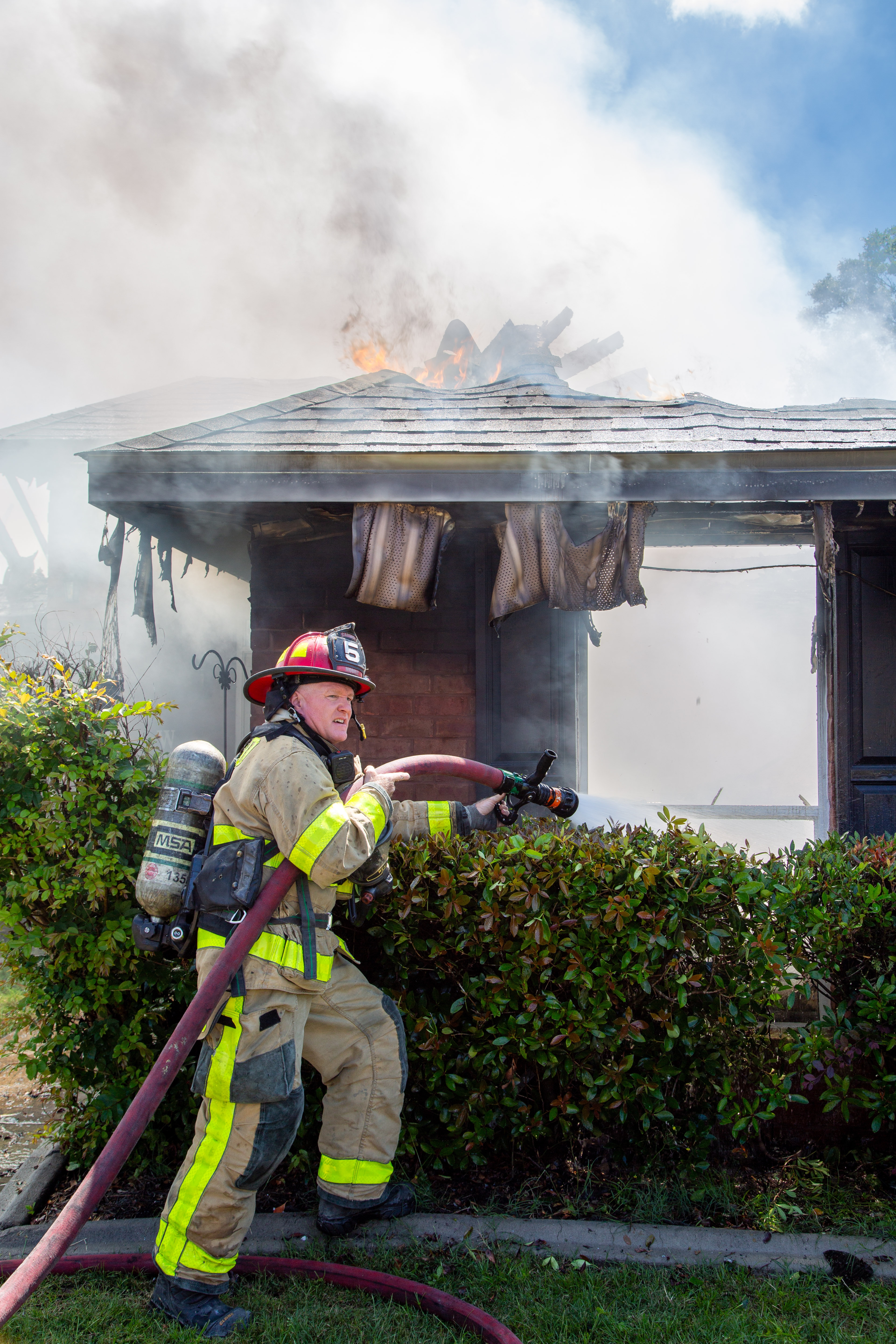Neighbors Occupants of the home were outside and said no one else was inside. As other units arrived, crews immediately began to put water on the fire and briefly made an interior fire attack until they were ordered into a defensive position where they could fight the fire from the outside. The fire burned through the roof and damaged the whole structure.
