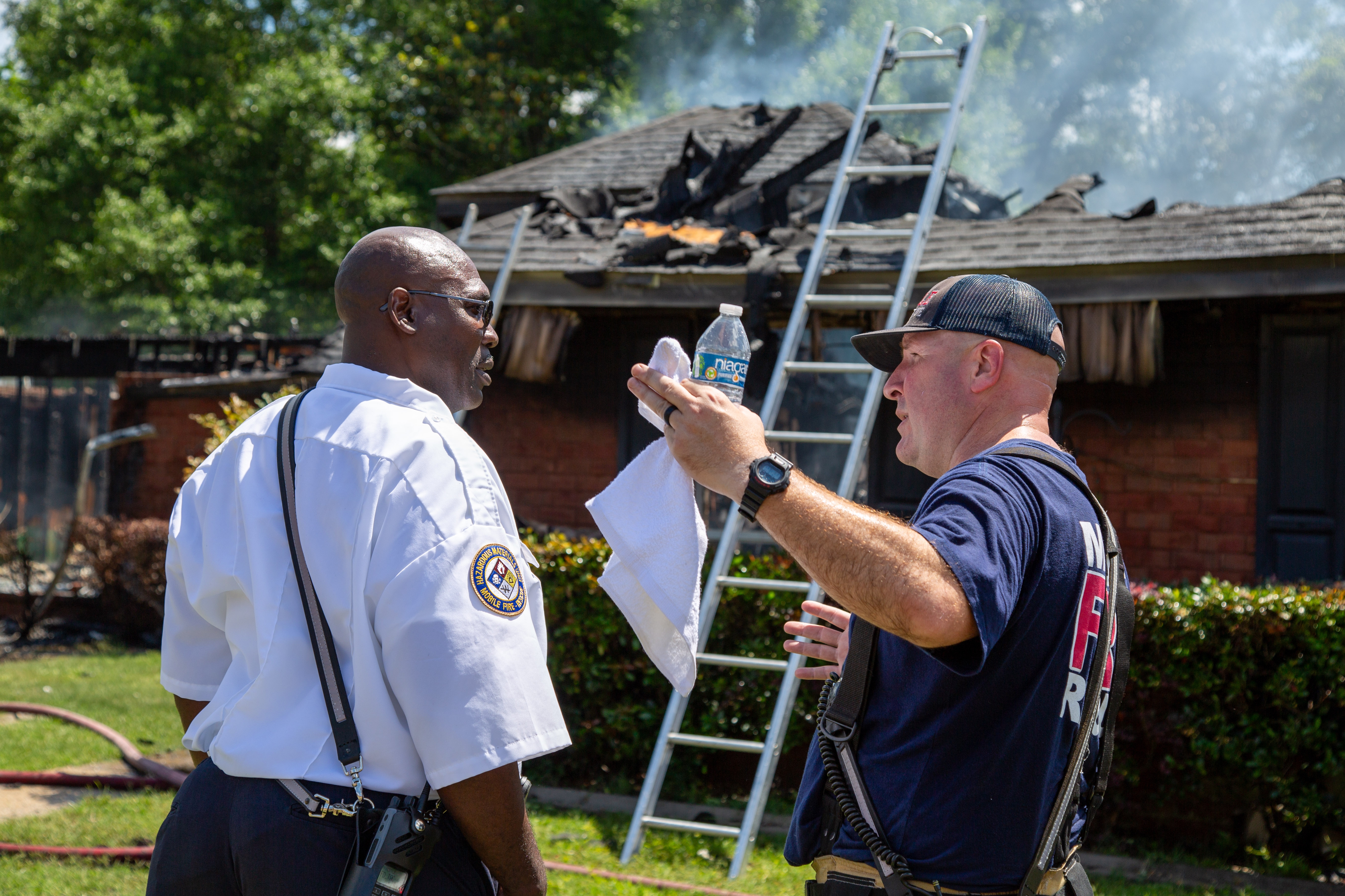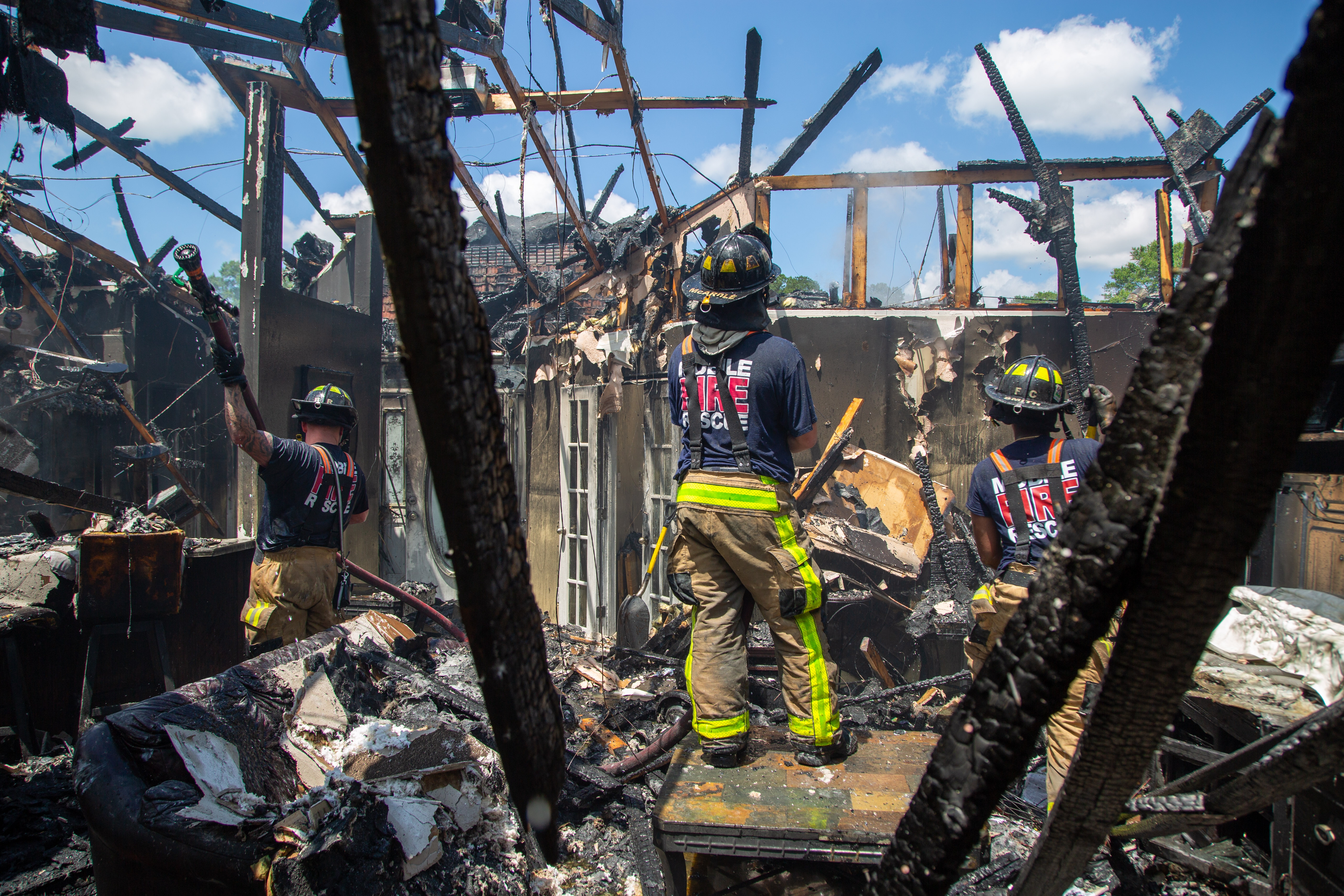 10:57 a.m. — Mobile Fire-Rescue Department units were dispatched for a report of a residential fire in the 3300 block of Kings Gate Drive West in Mobile, Alabama, Tuesday, May 13, 2025, after dispatch received multiple calls that a home in the neighborhood was on fire.